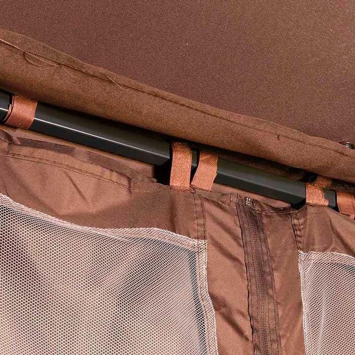 Хотим предложить вам приобрести такое изделие, как комплект для шестиугольного шатра. Данный комплект выполнен в коричневом цвете. В нём находится крыша-тент с клапаном для проветривания, плотные шторы, а также москитная сетка, которая защищает от насекомых. Это наилучший вариант в том случае, если вы хотите сделать свой отдых более комфортным. Комплект защитит вас от солнечных лучей, ветра, дождя, насекомых. Подойдёт комплект для размеров шатра 1,75 х 1,75 х 2,75 м. Крыша изготовлена из полиэстера с плотностью 160 г, а боковые стенки из полиэстера плотностью 140 г с сеткой.